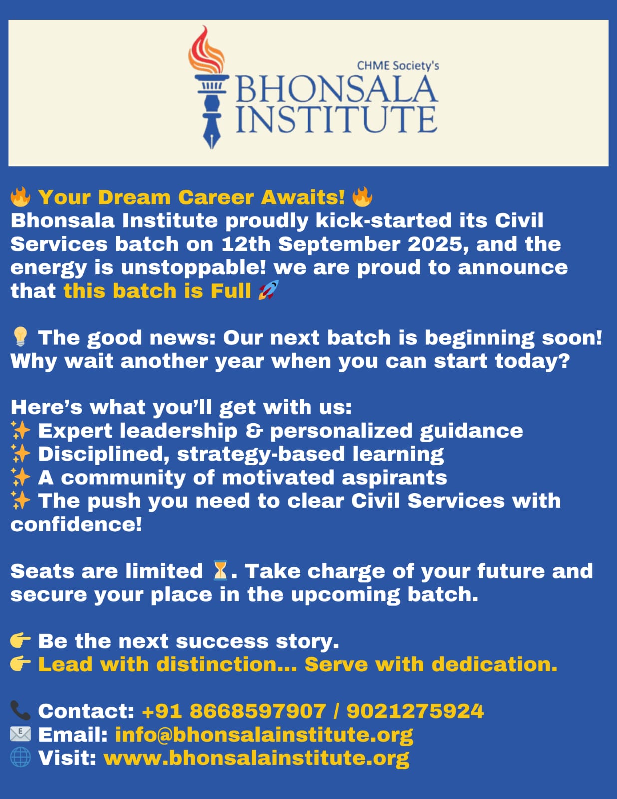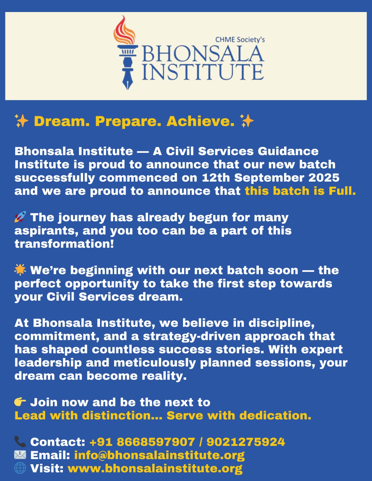 Phone: 8668597907 | 9021275924 | Email: info@bhonsalainstitute.org